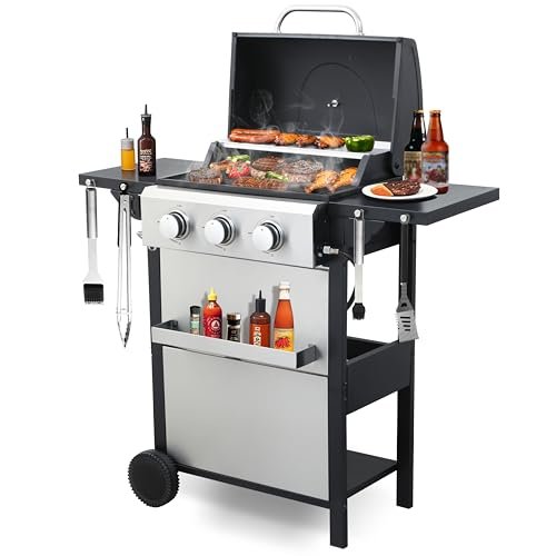 This guide explores the top budget-friendly gas grills that offer great performance and durability. These grills are perfect for outdoor cooking enthusiasts who want value without sacrificing quality. First, consider the 3-Burner Propane Gas Grill with its foldable side tables and porcelain-enameled flame tamers.