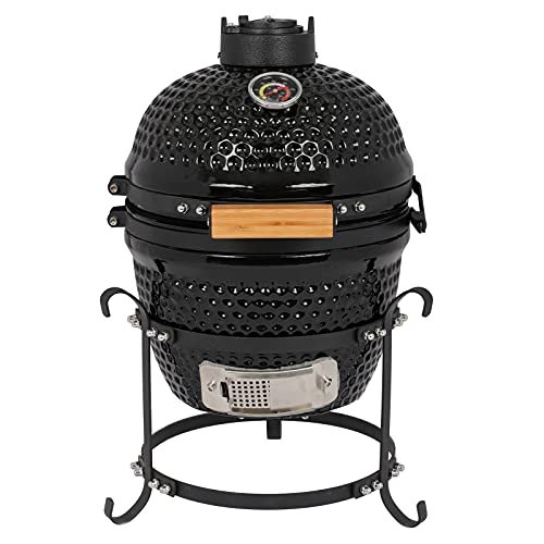 The Vasitelan 13 inch Portable Ceramics Charcoal Grill stands out because of its robust ceramic body, which maintains consistent heat and enhances the smoky flavor of grilled foods. Its compact size and lightweight design make it highly portable, ideal for outdoor cooking enthusiasts who value mobility. Whether you’re grilling steaks, smoking ribs, or baking pizza, this Kamado grill offers versatile cooking options that adapt to your needs.