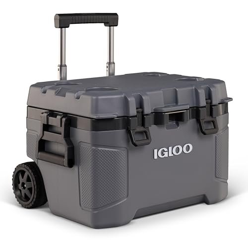 The Igloo Trailmate 52Qt Wheeled Cooler features a sturdy insulated hard shell designed to keep your ice intact for longer periods, making it highly effective for extended outdoor trips. Its durable build protects contents from impacts, while the carbonite finish adds a stylish yet practical touch that resists stains and scratches. The cooler’s size is optimized to hold enough supplies without becoming cumbersome to move.