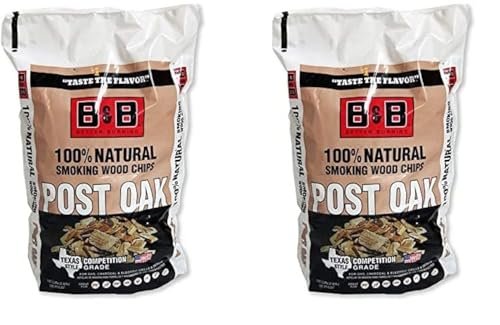 B&B Charcoal Inc offers 180 cu in of high-quality post oak chips. They provide a mild, smoky flavor perfect for slow smoking. The two-pack ensures a good supply for extended grilling sessions. These chips are natural and enhance meat taste without overpowering.
