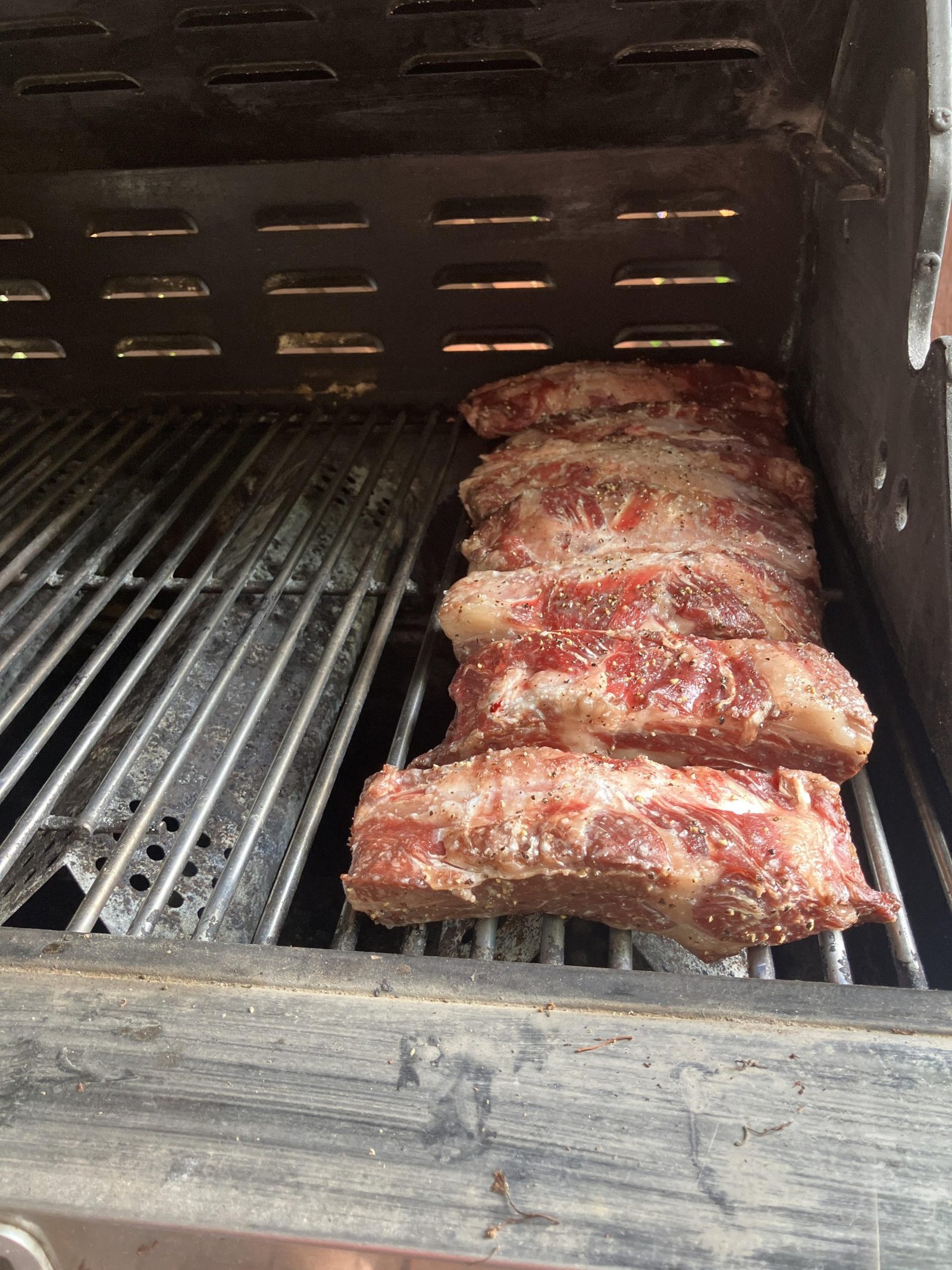 • Place the ribs on the cooler side, away from direct flames.