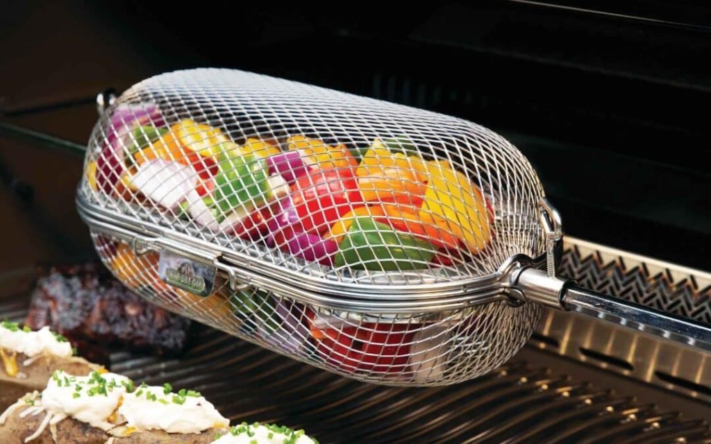 Grill baskets hold small or delicate foods that might fall through the grill. Vegetables like bell peppers, zucchini, mushrooms, and asparaguscook well inside baskets. They get nice grill marks and stay juicy.