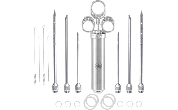 | Needle | Stainless steel or plastic | Pierces meat and delivers marinade |